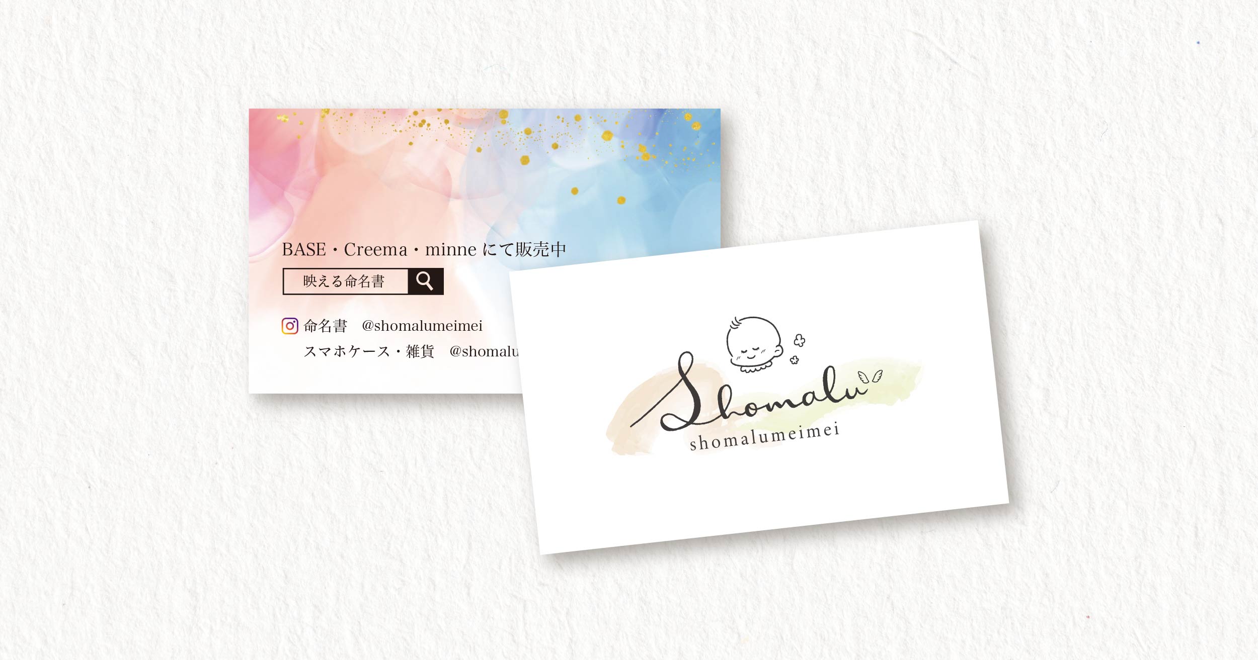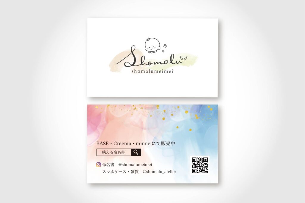 アルコールインクアートで命名書を制作していらっしゃる、書まる様からのご依頼でロゴとショップカードを作成しました。
